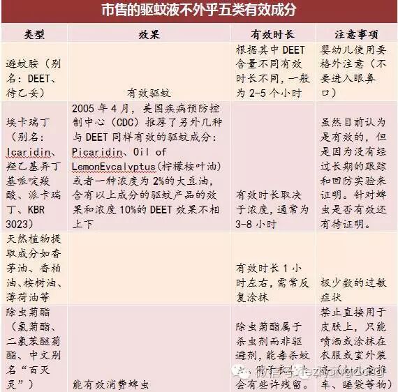 2)避蚊胺(DEET)或者驱蚊酯是目前使用最广泛的化学成分,并不是完全不能给婴儿使用,美国儿科医师协会认为2个月以上的宝宝可以使用含DEET30%以下的产品,加拿大卫生部则认为6个月以上的宝宝才能使用,但如果有纯天然的选择,无疑更安全。
