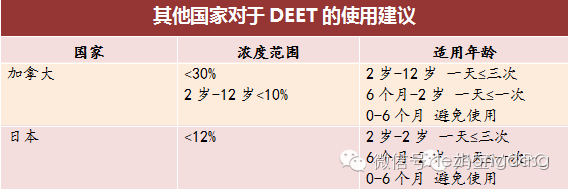3)浓度含有10%避蚊胺的产品可以提供3小时的保护,浓度为30%的产品可以提供6小时的保护
