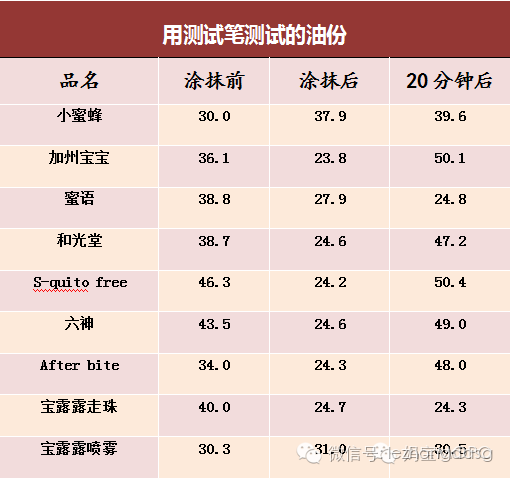 将9种产品分别涂到化妆棉上,30分钟后对化妆棉上留下的痕迹和湿度查看对比